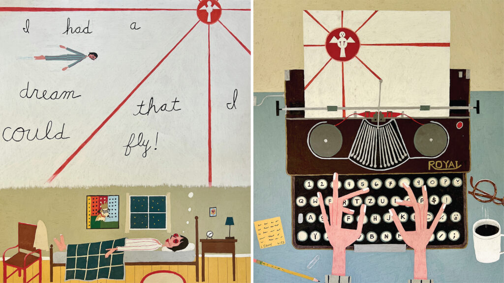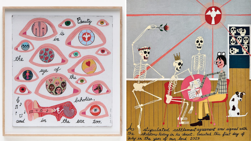 “I am not at all religious,” Eddy confesses. Yet the former Texan began collecting—and later trading—19th-century Mexican folk retablos after buying a few in San Antonio in 1991. These narrative devotional paintings on tin panels give thanks in words and images to patron saints, and they’ve since shaped both his eye and his art.