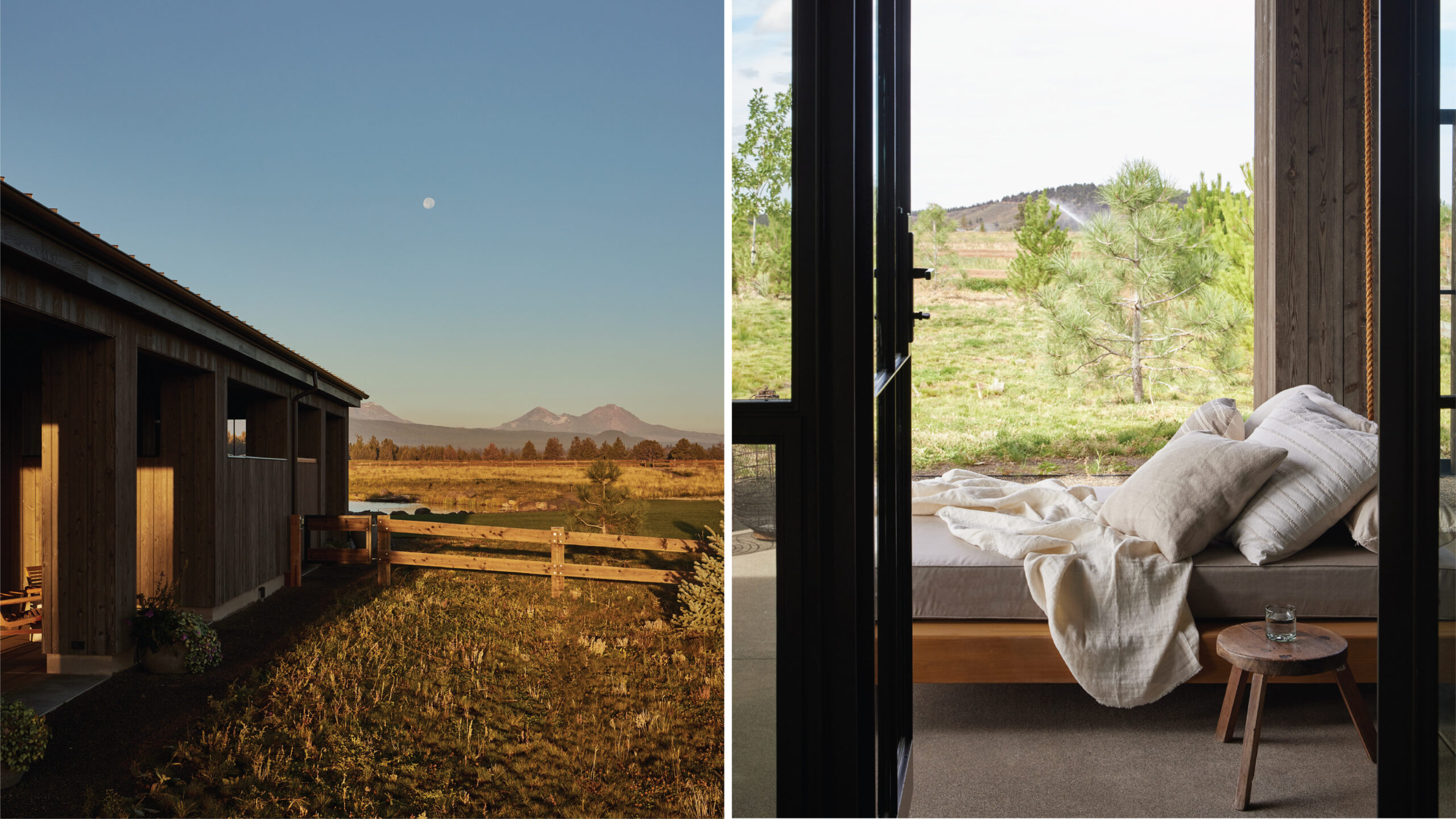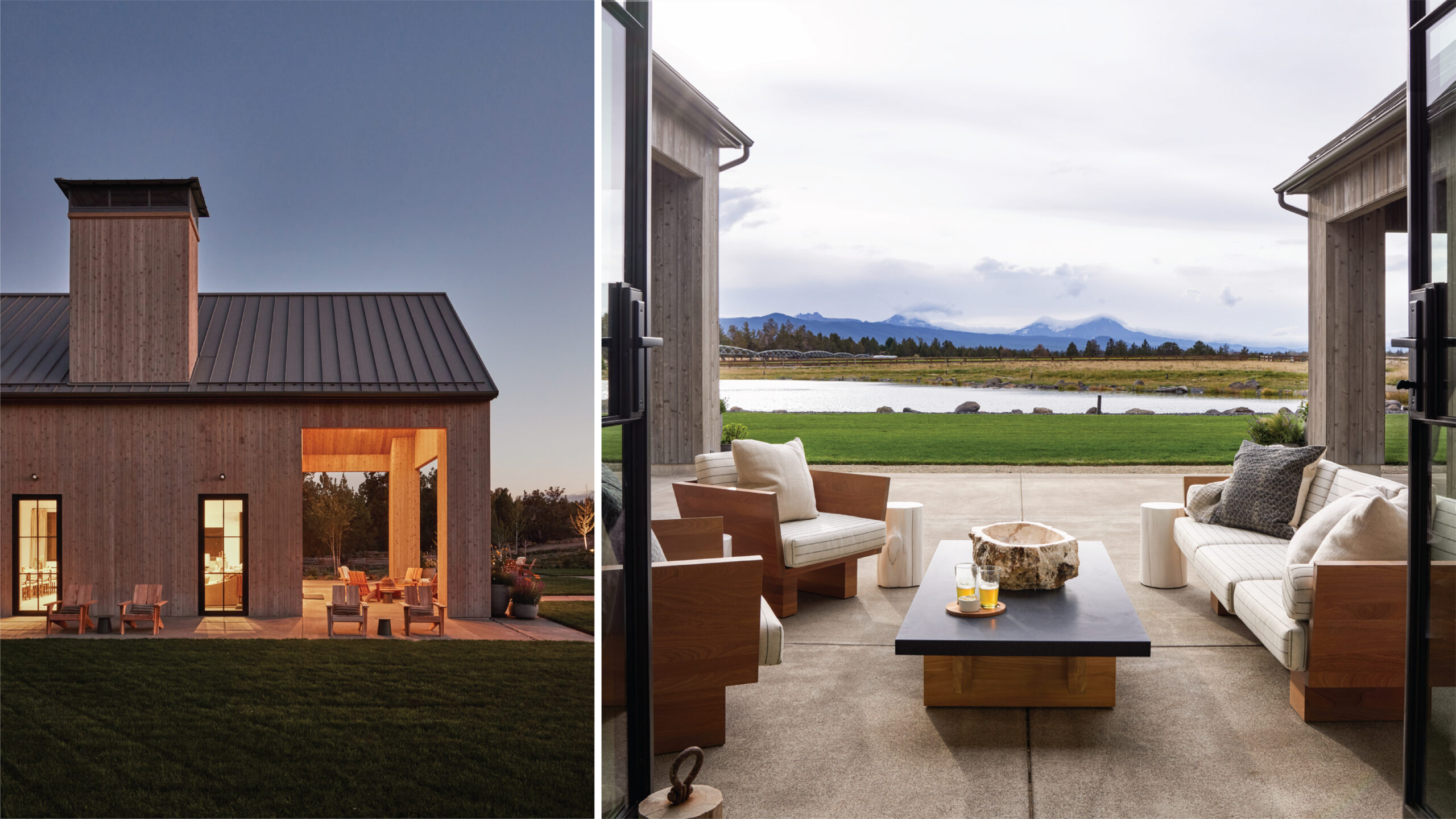 The region became the family’s favorite summer spot, and they found themselves wanting to spend more time there. So, they searched for a place they could call their own and knew they’d found home when they discovered a site with unobstructed vistas of Mt. Bachelor, Mt. Hood, Mt. Jefferson, Three Sisters, and Broken Top. “The mountain views are arguably the most special part of the property, which also seemed to be the perfect match as it allowed us to [construct] several buildings to accommodate family and friends all year long,” says the wife.